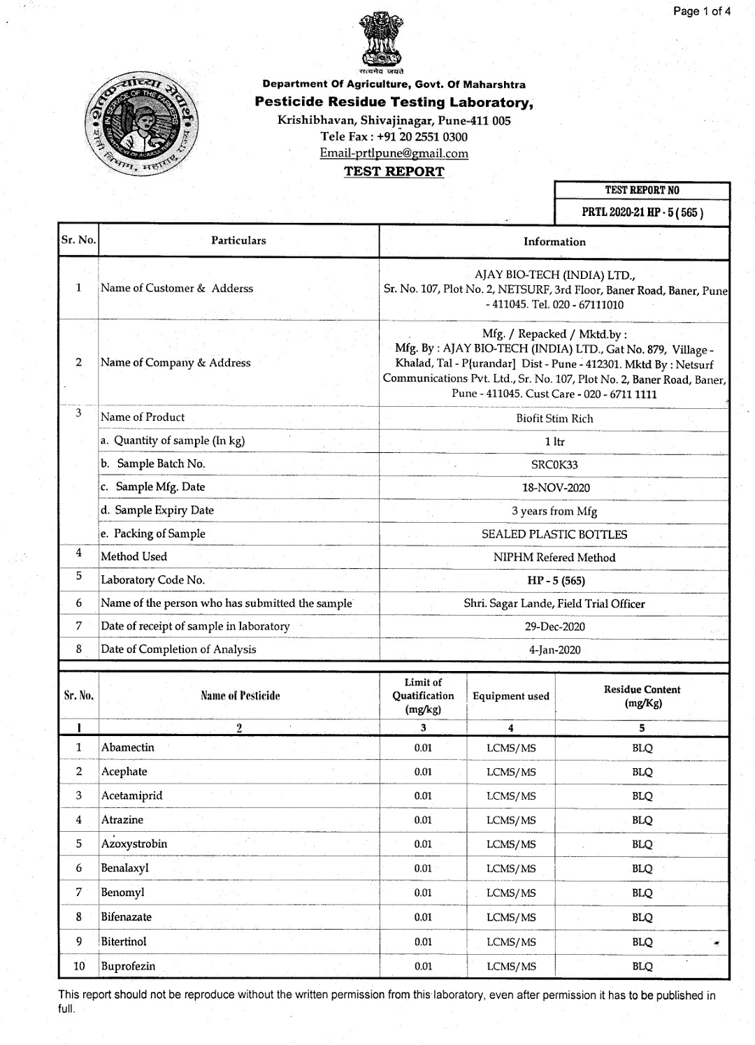 Netsurf agricultural products 100% नेचरल होने के कारण उनके काफी सारे प्रमाणित सर्टिफिकेट्स मिले हुए है। इस प्रॉडक्ट्स को हमारी सरकारने भी प्रमाणित किया है। चलिए देखते है Netsurf biofit products को कोनसे प्रमाणपत्र मिले है।