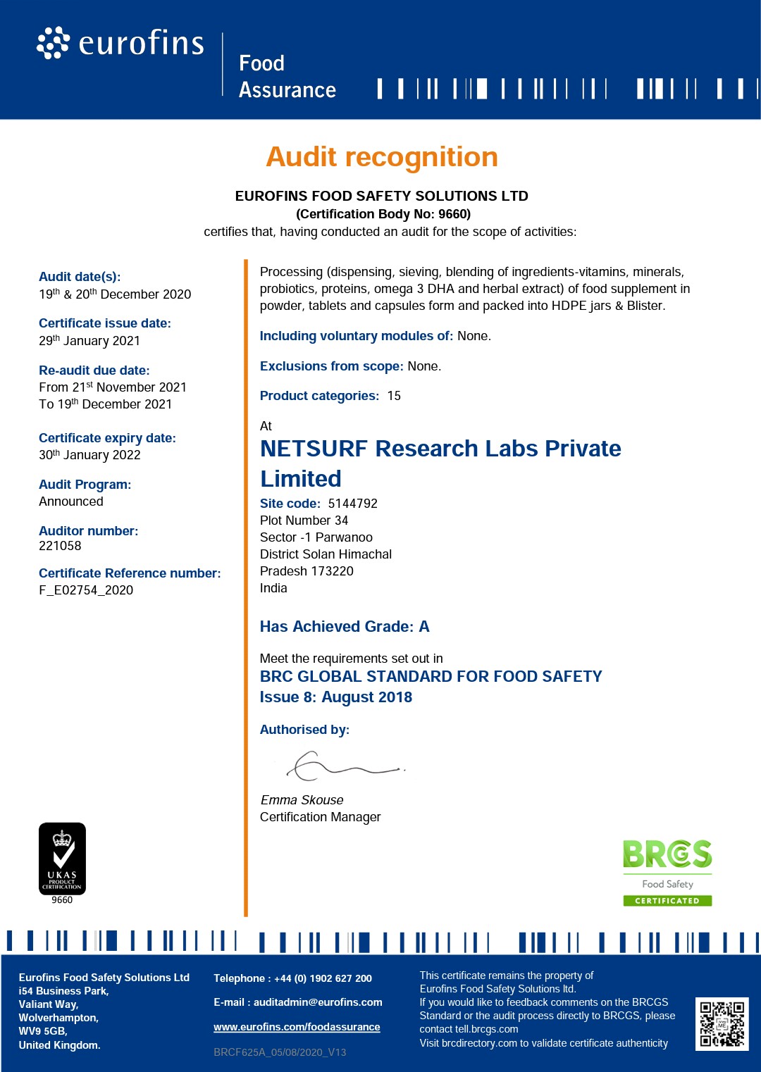 Netsurf biofit organic Certificates :